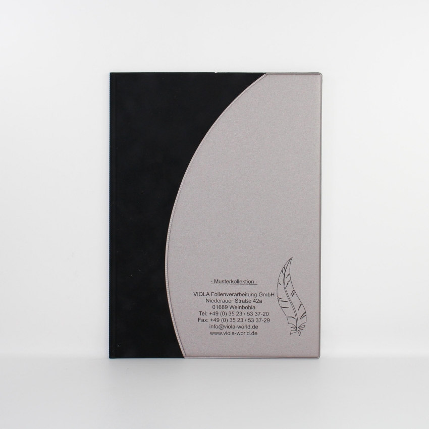 Wir produzieren Ihnen die Mappe sehr gerne nach unserem hier dargestelltem Design. Die Auswahl der Folienfarbe und der Design kann aber auch ganz in Ihren Händen liegen –  Sie lassen Ihren Vorstellungen freien Lauf und wir kreieren Ihre individuelle Mappe.