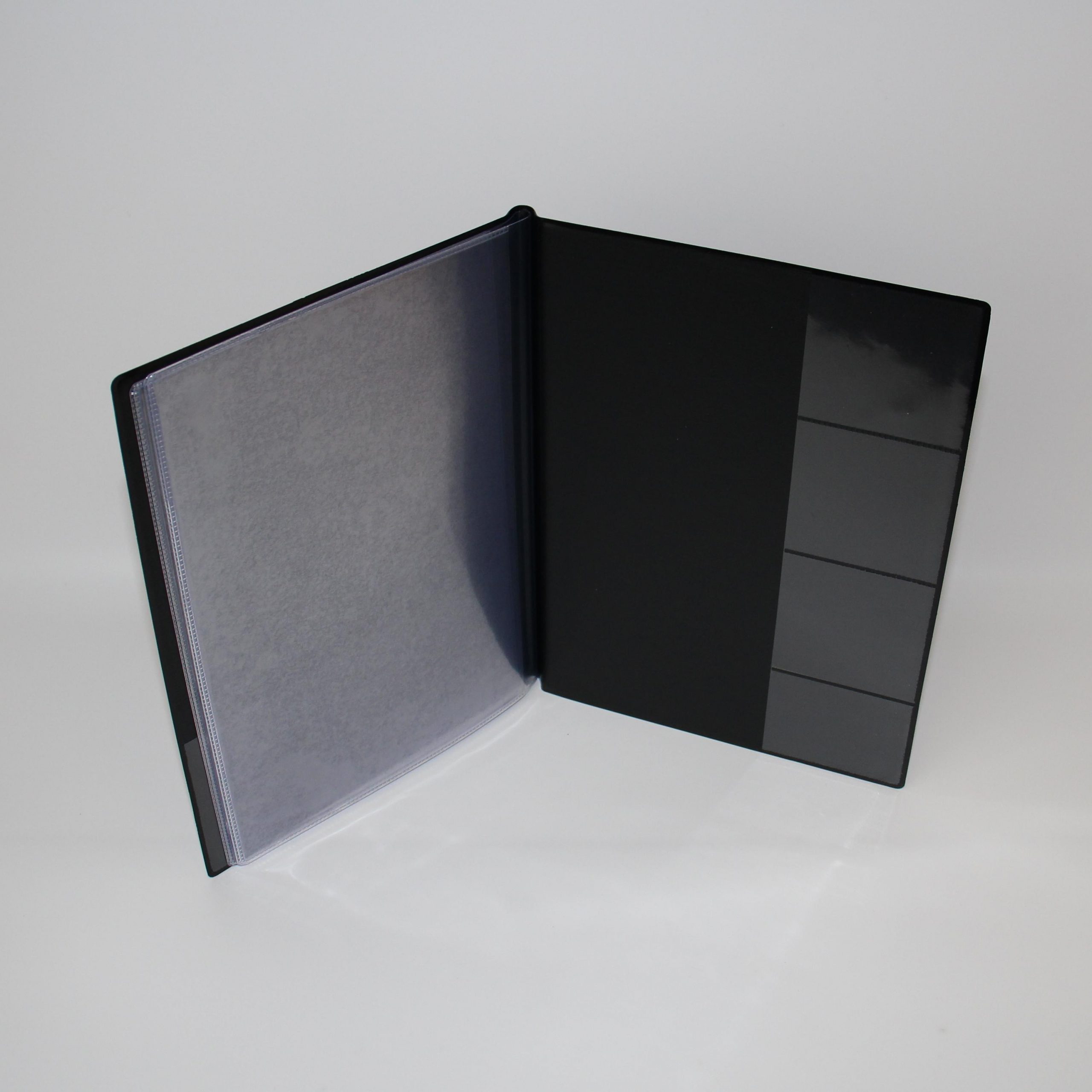 ▫ 3x abgeschweißt für Scheckkarten 4 eingeschweißte Klarsichthüllen, zur Mitte hin offen
